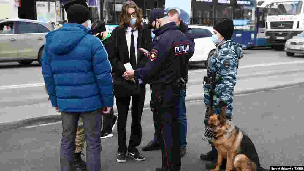 Российские полицейские отводили в сторону участников собрания для проверки их документов