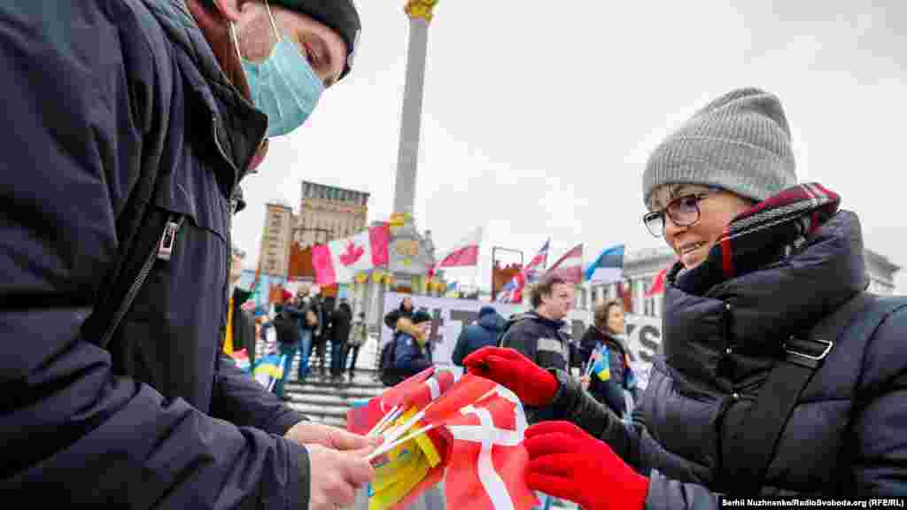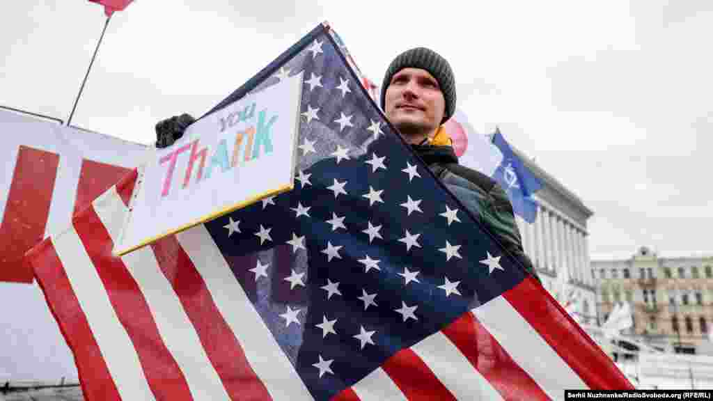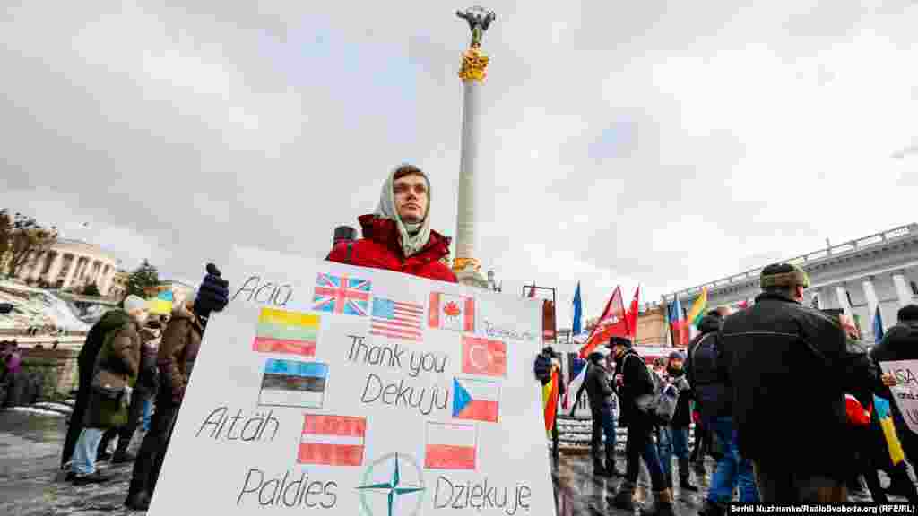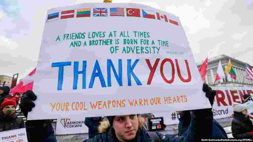 Акція подяки союзникам України, які надали військову допомогу нашій країні перед загрозою вторгнення Росії, відбулася на Майдані Незалежності в Києві. Акція проходила під гаслом #ThanksFriends – подякуй союзникам за зброю
