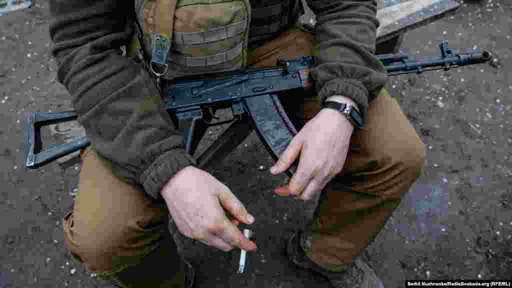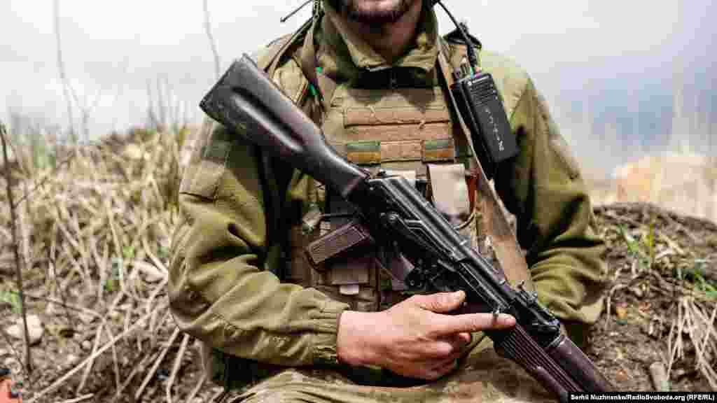 Боєць ЗСУ на позиціях поблизу лінії фрону, 22 квітня 2022 року