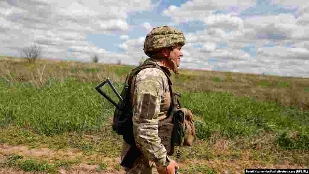 Українські військові йдуть на позиції ЗСУ. Донецька область, 28 квітня 2022 року