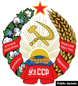 На всіх радянських гербах мав бути зображений серп і молот, снопи пшениці, сонце, яке сходить, і червона зірка комунізму. Марксистський заклик – «Пролетарі всіх країн, єднайтеся!» – також був обов’язковим. Узбецький герб був прикрашений квітучою гілочкою бавовни і написом «Уз.РСР», скорочено від «Узбецька Радянська Соціалістична Республіка».