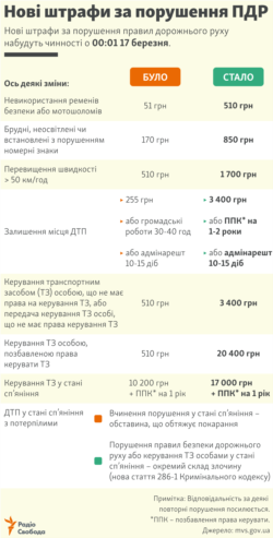 Нові штрафи за порушення правил дорожнього руху набудуть чинності о 00:01 17 березня