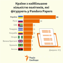 Країни з найбільшою кількістю політиків, які фігурують у Pandora Papers