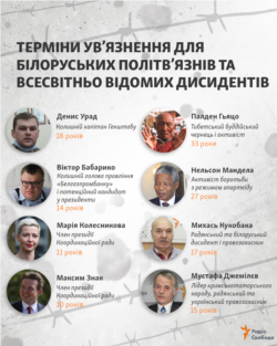 Терміни ув’язнення для білоруських політв’язнів та всесвітньо відомих дисидентів
