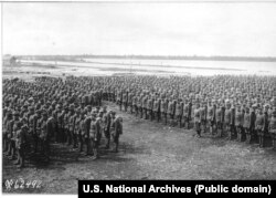 Війська США шикуються в чергу для перевірки перед тим, як покинути Росію, червень 1919 року.