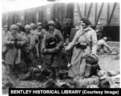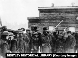 Американські солдати та їхні союзники на півночі Росії, листопад 1918 року.