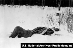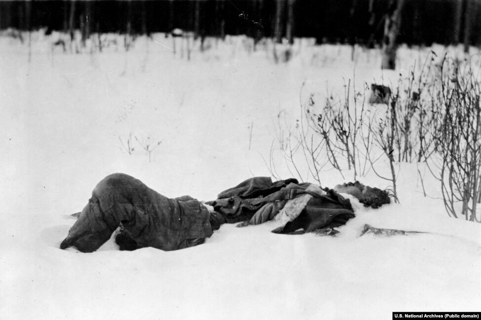 Застрелений більшовик після його спроби атакувати вночі американський форпост на Крайній Півночі Росії.
