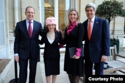 Це фото було зроблене в Парижі в січні 2014 року. На ньому Сакі стоїть, посміхаючись, зі своїм тодішнім керівником, держсекретарем Джоном Керрі, поруч із міністром закордонних справ Росії Сергієм Лавровим і Марією Захаровою, речницею російського МЗС і в той час колегою Сакі.