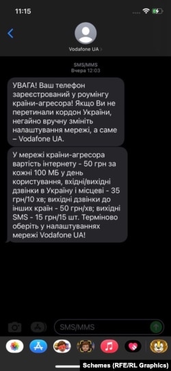 Мешканці Вовчанська також розповіли, що окупанти почали налагоджувати російський мобільний зв’язок. На підтвердження показують смс-повідомлення від Vodafone про те, що їхні телефони «зареєстровані у роумінгу країни-агресора». У випадку, якщо користувач не перетинав кордон, український мобільний оператор пропонує користувачу змінити налаштування мережі.