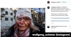 Фотографію жінки з закривавленим обличчям та перебинтованою головою німецький фотограф Вольфганг Шван зробив у Чугуєві 24 лютого – у перший день повномасштабного військового вторгнення РФ в Україну. Цей кадр облетів весь світ та став першим доказом ударів російських ракет по цивільному населенню.