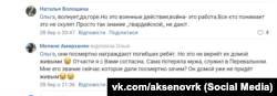 Частина родичів загиблих і полонених писала в соцмережах на сторінці російського глави Криму Сергія Аксьонова (за паспортом Аксенов) про те, що звання та нагороди не повернуть їм рідних.