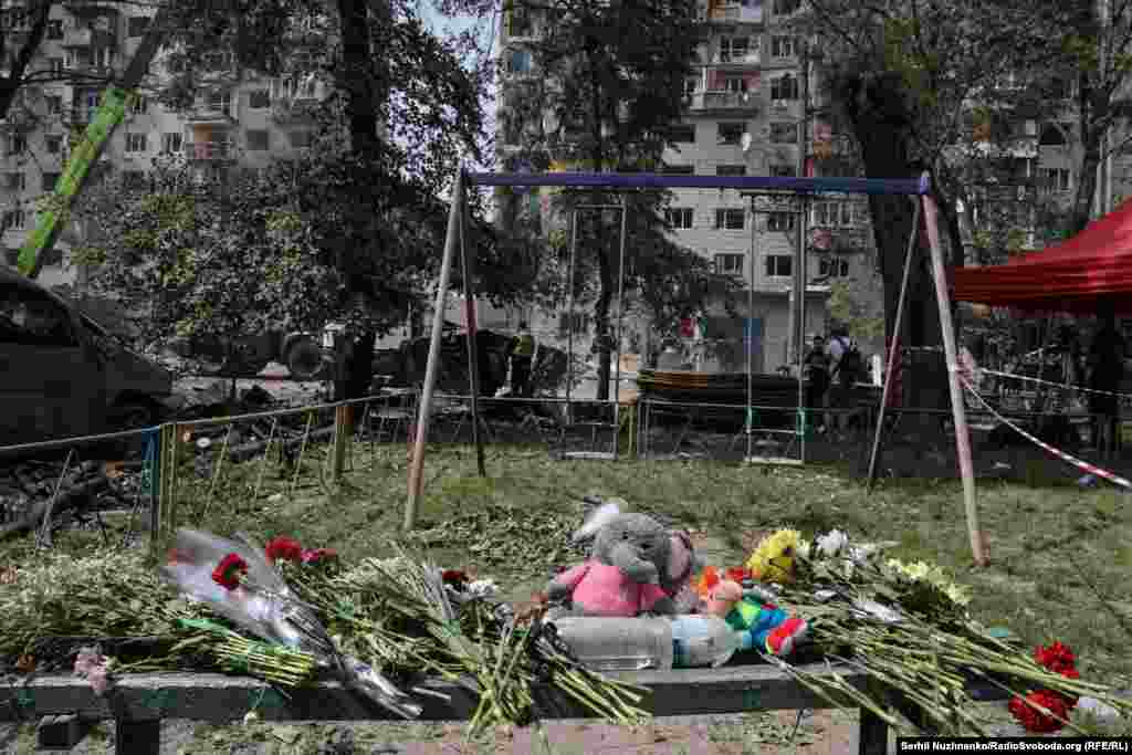 Унаслідок масованого ракетного удару РФ по Києву, що стався 17 червня, кількість загиблих зросла до 28 осіб. Ще понад 140 людей отримали поранення. У Соломʼянському районі, де одна з ракет влучила в багатоповерхівку та зруйнувала цілий під'їзд, пошуково-рятувальні роботи завершили, повідомили в Офісі генпрокурора. Кияни несуть квіти на місце російського обстрілу. Місцеві мешканці збирають вцілілі речі. У квартирах, що частково постраждали від ударної хвилі, люди забивають вікна фанерою та дошками.