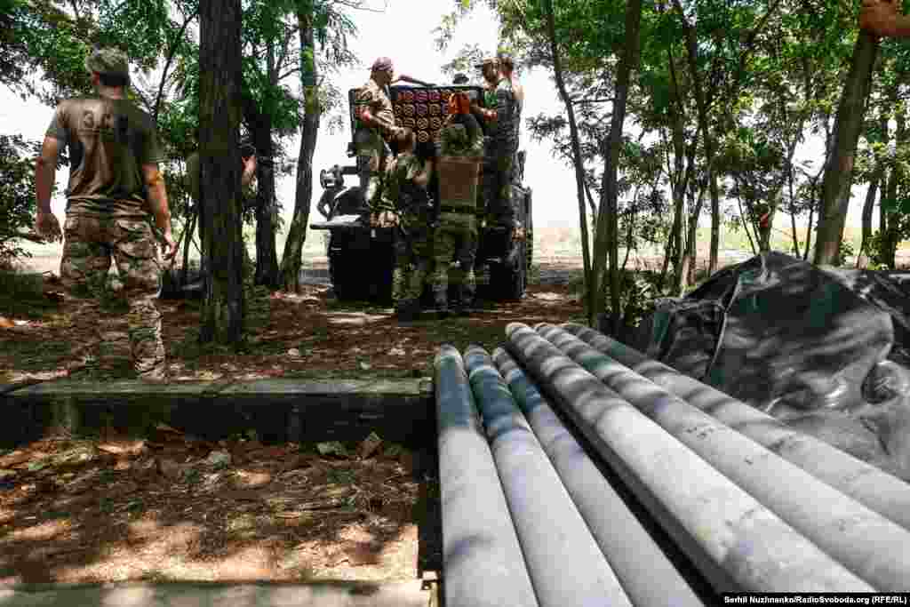 Військові п’ють каву, хтось палить, за декілька хвилин приїде БМ-21 «Град», яку потрібно буде швидко зарядити для бойової роботи на одному з найгарячіших напрямків на Запоріжжі