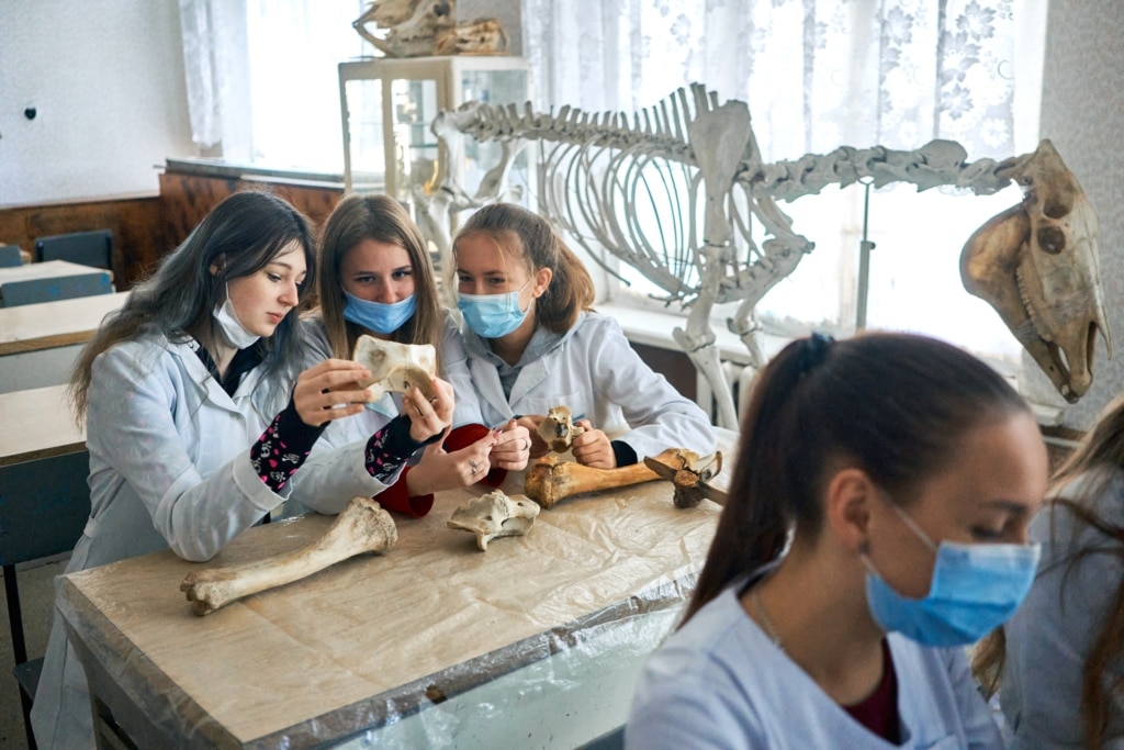 «Свиня, – студентка бере до рук хвостовий хребець тварини. – Тіло вузьке, а крила короткі. Має кронові отвори», – дівчина крутить кістку в руках і намагається згадати назву і характеристики усіх її ділянок.
