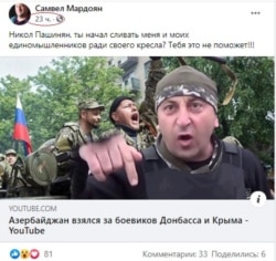 На цій же сторінці «Самвел Мардоян» критикує режим Нікола Пашиняна й називає його «зрадником усіх вірмен».