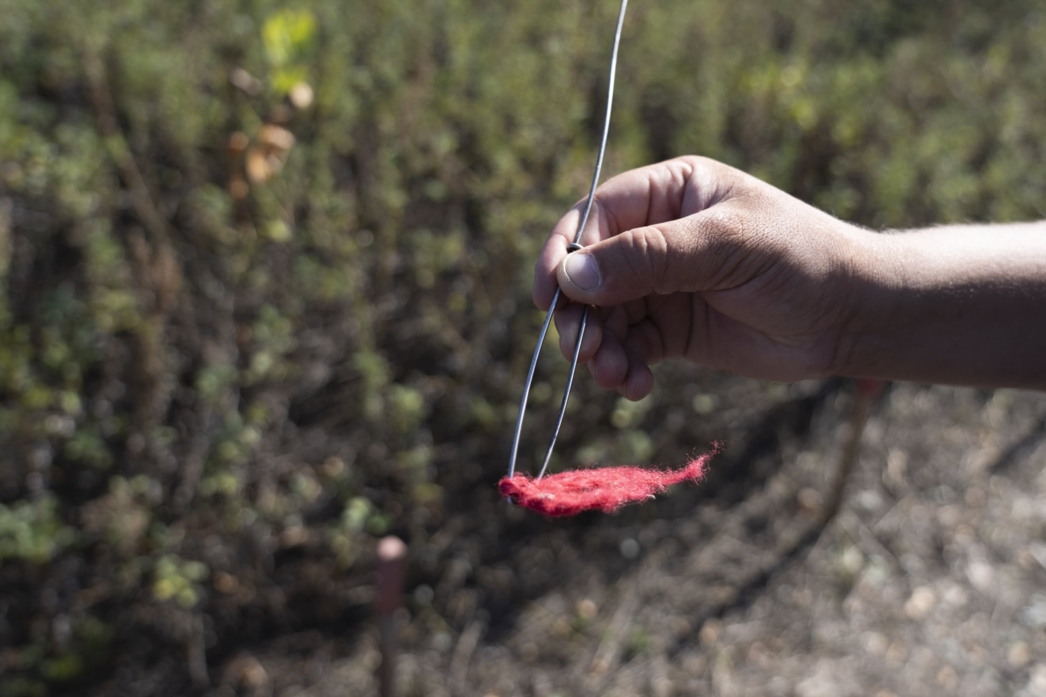 And what about booby traps? In the locations where they are suspected to be, they are manually swept for using a feeler – a cord like this: