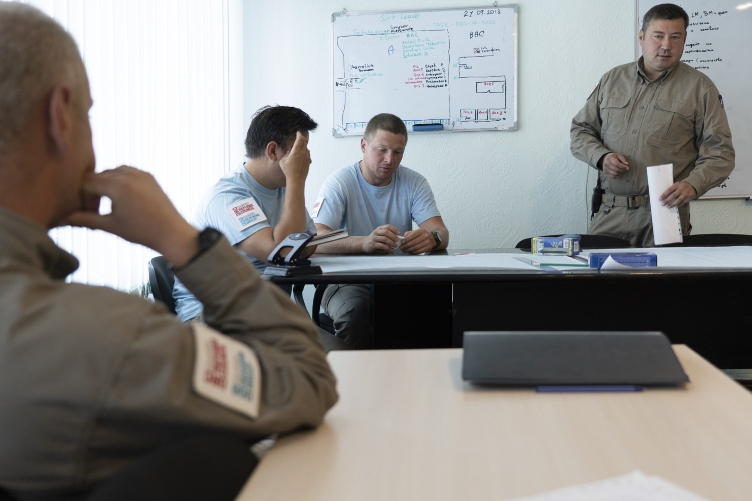 The workday on the base starts at 8.30 am, and even earlier for senior officers who finalize the tasks for the day at their plan of the day meeting. At 9 am, deminer groups would go out in the field and work six sessions 50 minutes each, with nine-minute rest breaks and one large lunch break.