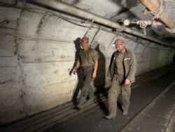 Поруч нього шахтар Володимир Голько пояснює, що на шахті останні 5 років немає господаря і копальня «розсипалась».