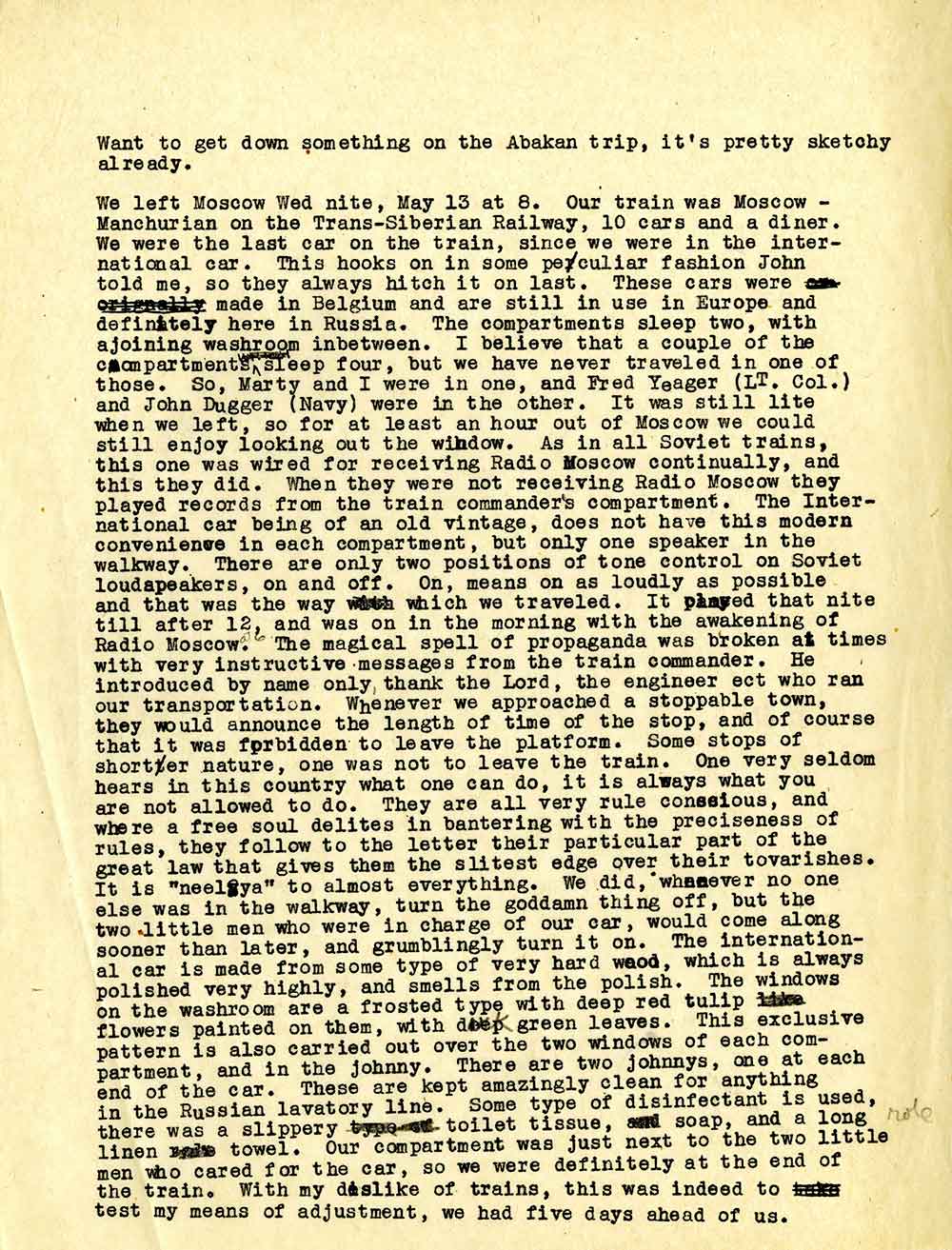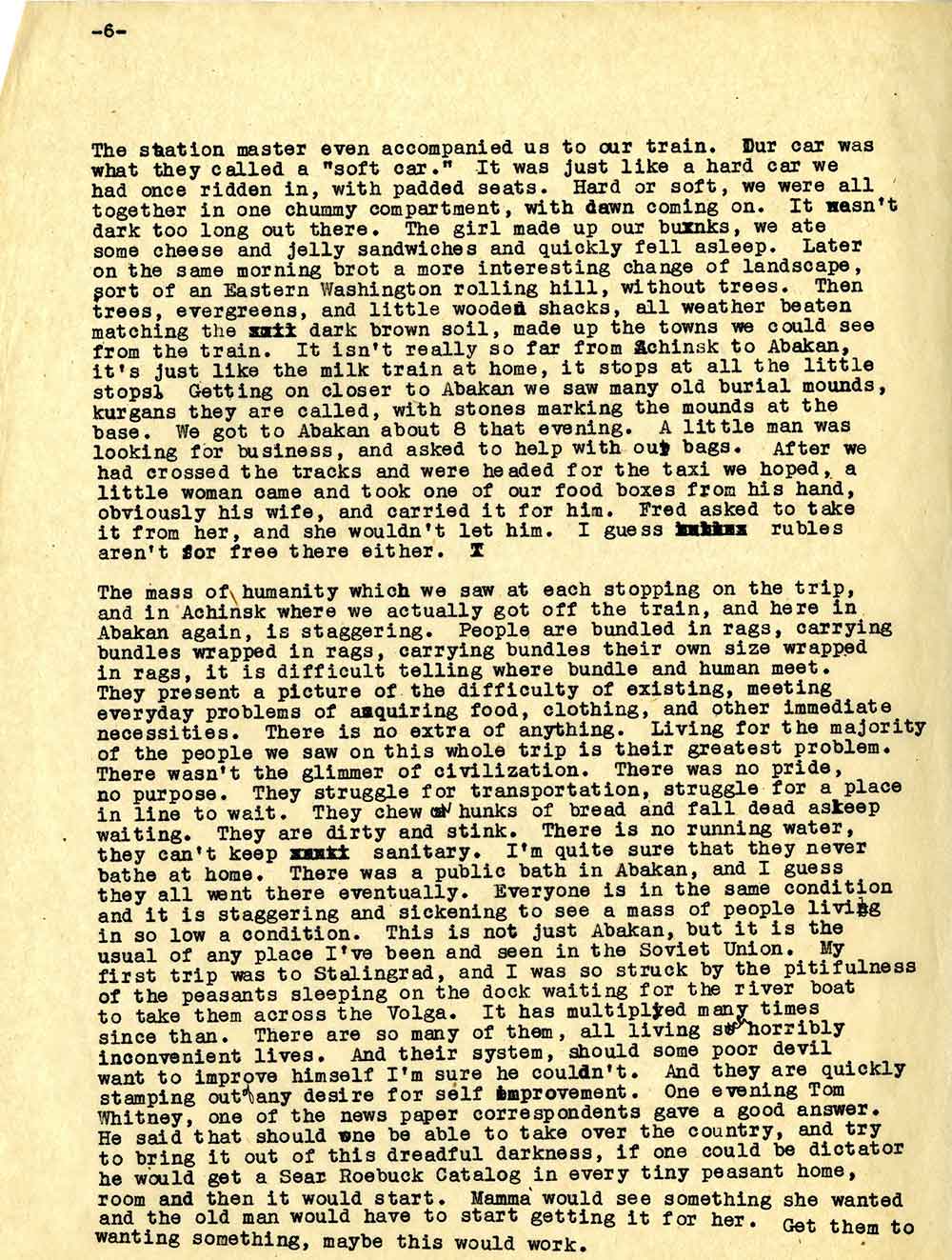 Листи, які Джен писала друзям і родичам, свідчать про живий інтерес до радянської повсякденності. З помітним розчаруванням вона розповідає про підозрілість, з якою їм довелося зіткнутися в СРСР.