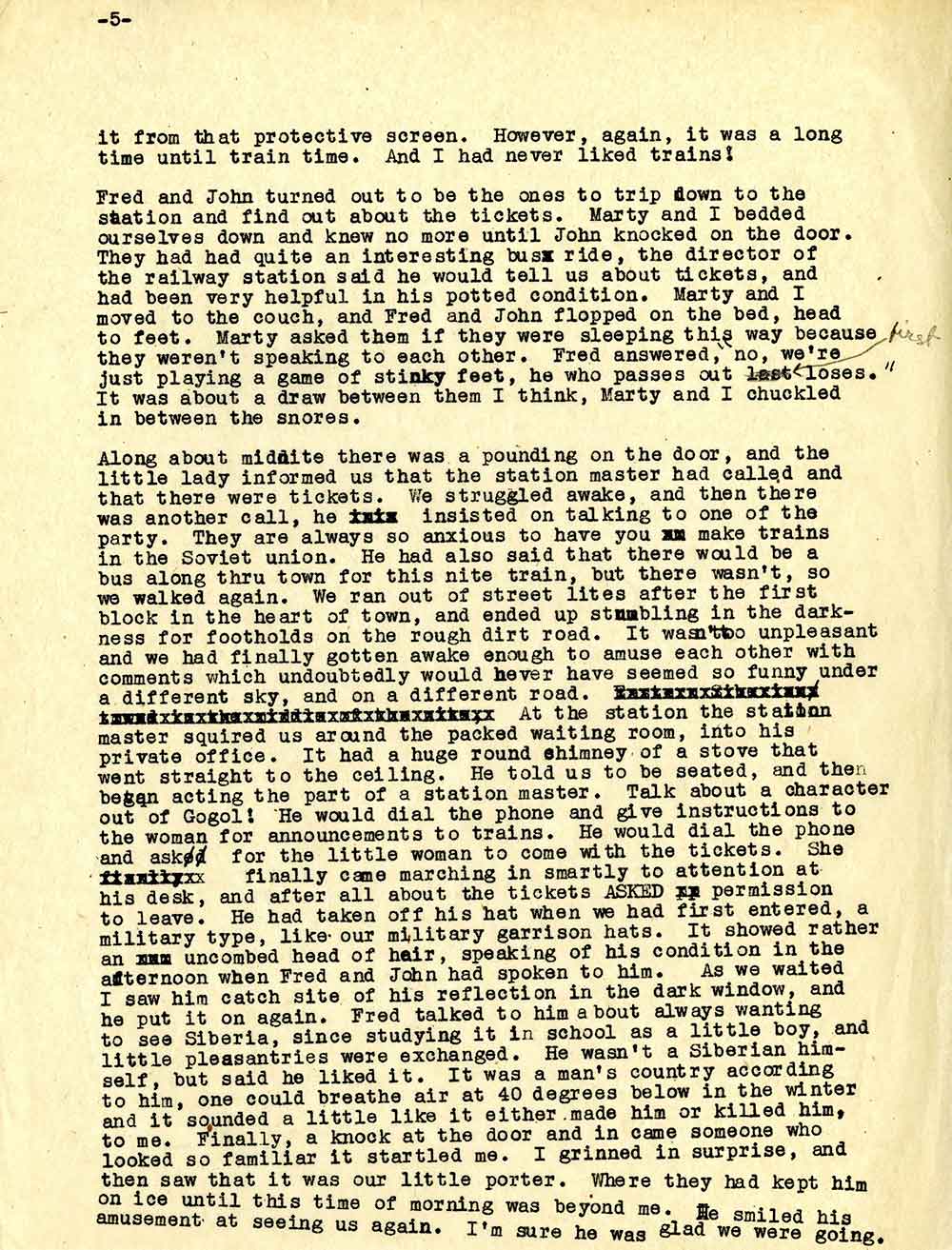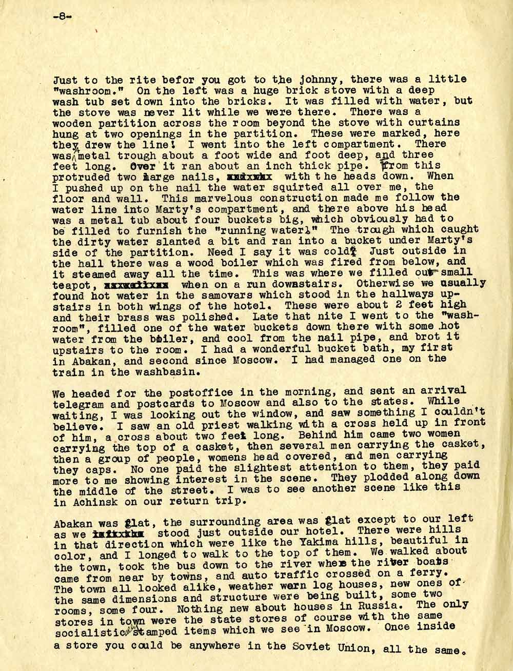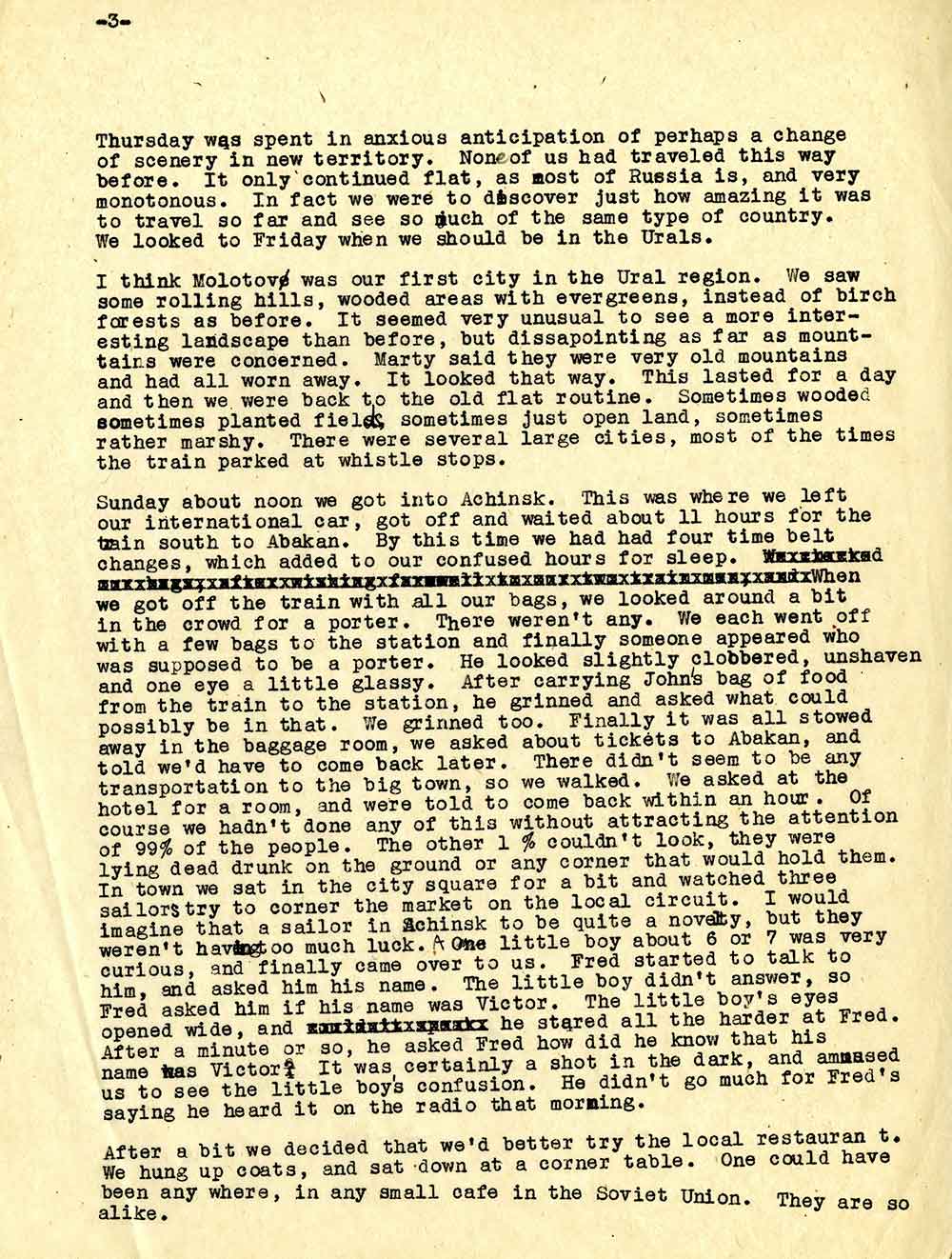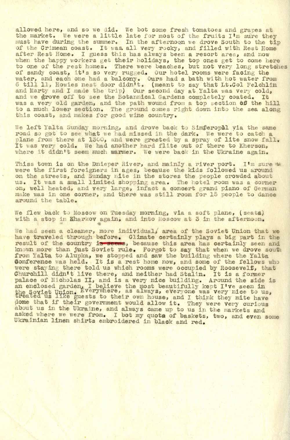 «Ніяких контактів з росіянами встановити неможливо – безпосередньо ми стикаємося тільки з обслугою і продавцями в магазинах», – пише вона в одному з листів (без дати). «Поговорити з росіянами можна хіба що в поїзді, але і тут почуття обережності не дає їм вийти за рамки поверхневої балаканини».