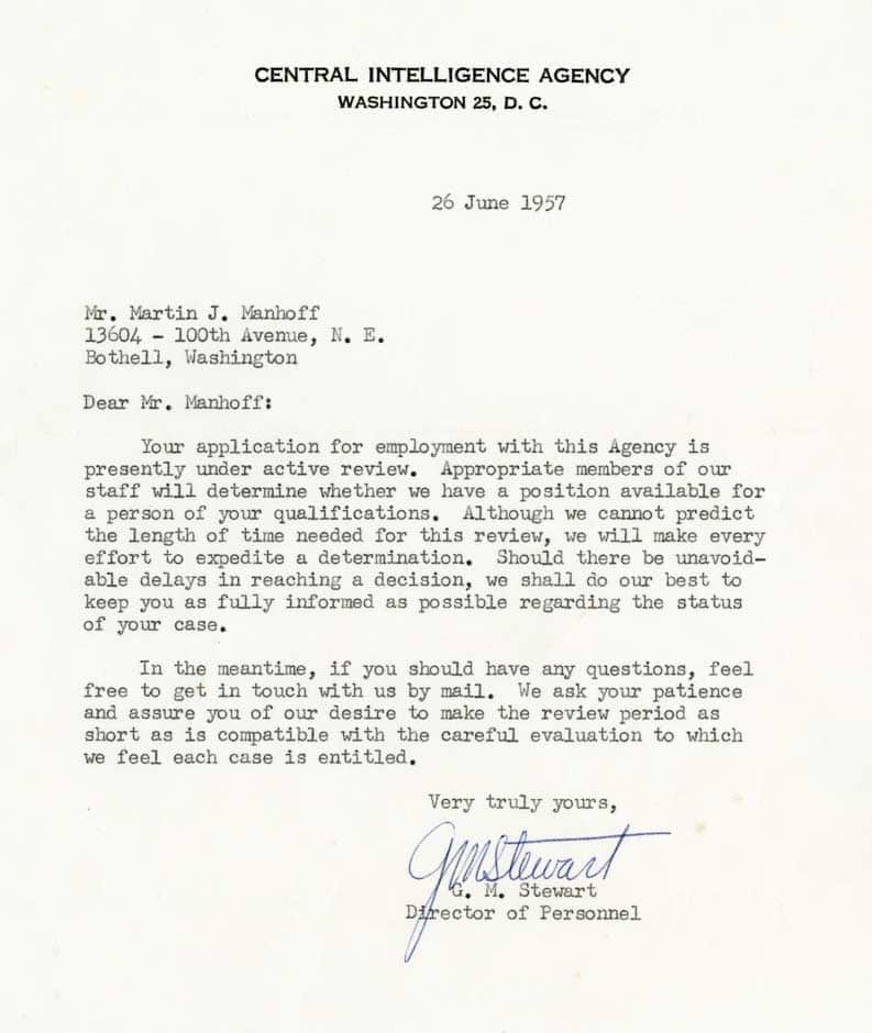 Один з паперів, виявлених серед документів Мангофа, свідчить, що через три роки після повернення до США він намагався влаштуватися на роботу до ЦРУ.