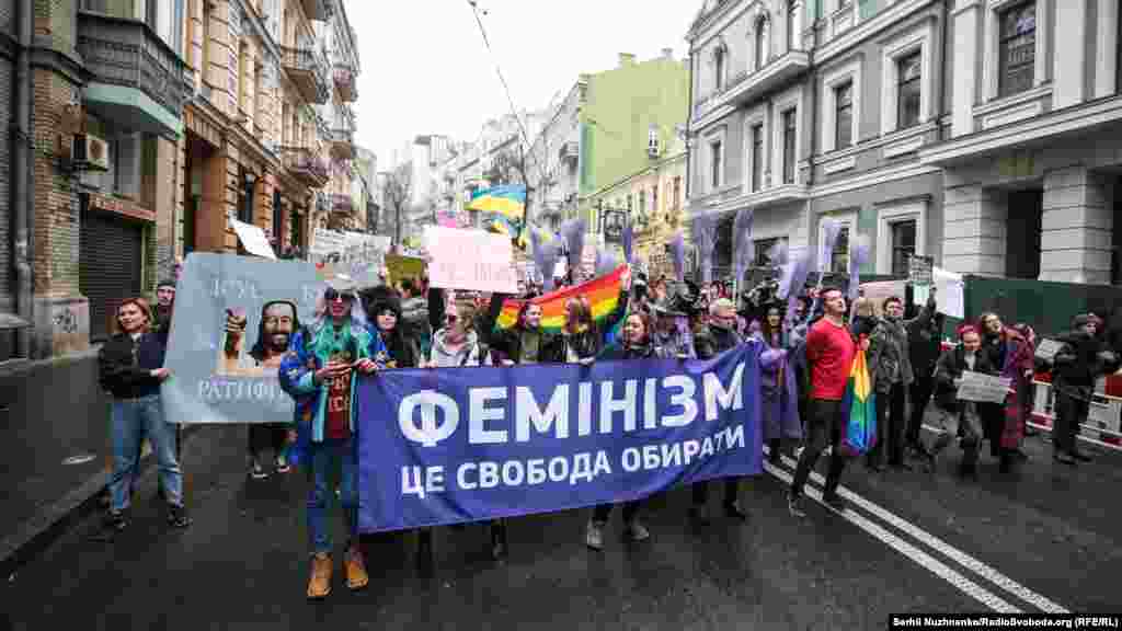 У центрі Києва 8 березня відбулася акція «Марш жінок», учасники якої вимагали від депутатів ратифікувати Стамбульську конвенцію і виступали за ґендерну рівність у суспільстві. Демонстранти зібралися на Михайлівській площі і пройшли ходою до Поштової площі.