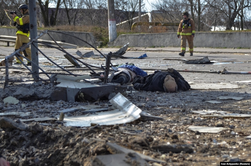Після російського удару: у Херсоні на зупинці громадського транспорту лежать тіла загиблих, 9 березня 2023 року