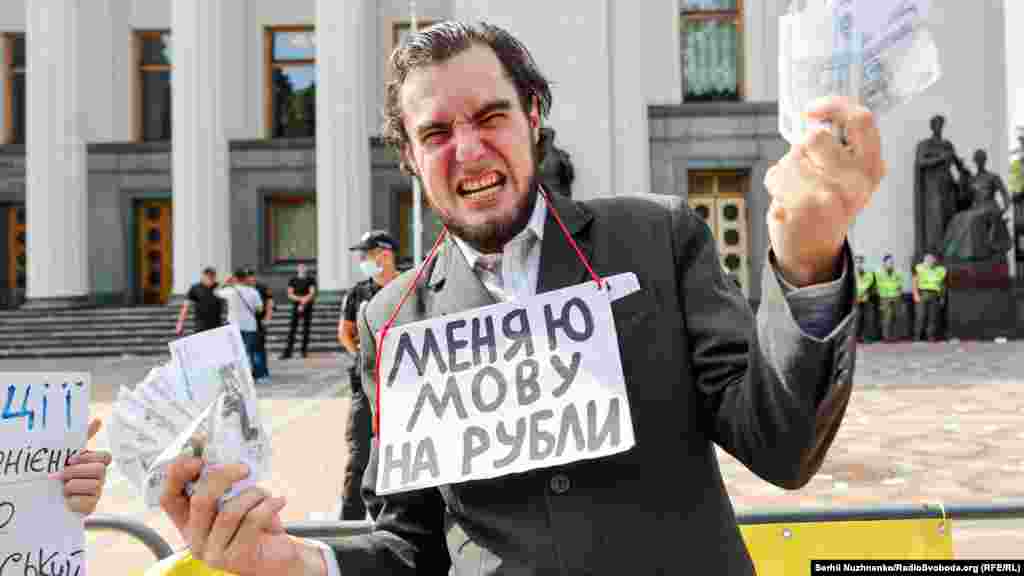 «На знак протесту проти найбільшого з часів Януковича наступу влади на мову ми принесемо депутатам-зрадникам 150 тисяч російських рублів», – анонсували напередодні організатори акції