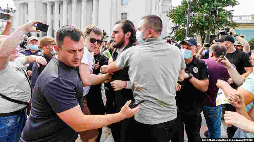 Однак народному депутату від «Європейської солідарності» Володимиру В'ятровичу вдалося «відбити активіста і не допустити його затримання. Цей інцидент під Верховною Радою також задокументований на ВІДЕО Радіо Свобода