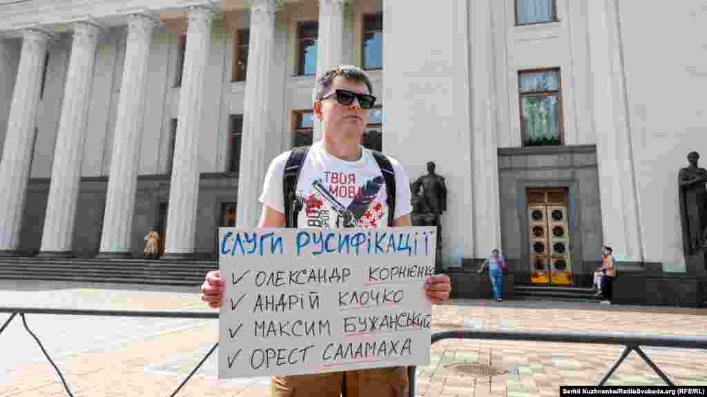 Акцію «Не дамо продати мову» провели 15 липня біля Верховної Ради громадські активісти. «Напередодні другої річниці набуття чинності закону про мову депутати планують незаконно вивести з-під його дії телебачення, прирівняти російську мову до української в освіті і зробити порушення мовного законодавства безкарним», – зазначили організатори акції.