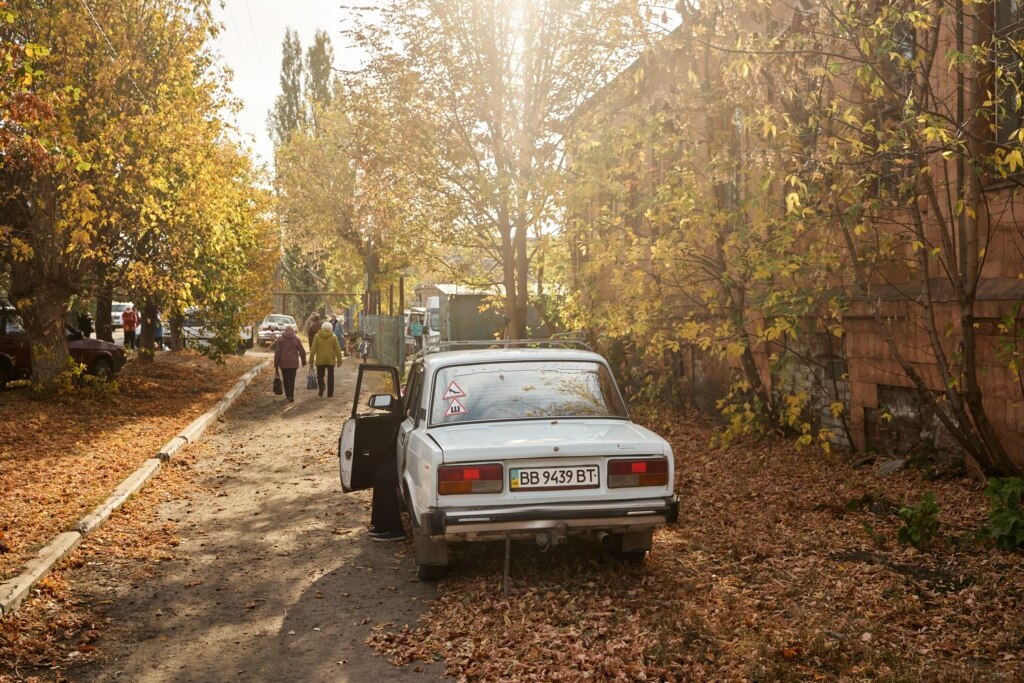 «От у мене чоловік там живе, за парканом прямо, – після деякої паузи по-змовницьки каже Тетяна, обпершись на сапку. – Ось ці двоповерхівки навпроти маслозаводу». «А вона з сином – тут! – підхоплює подруга. Видно, що це одна із найболючіших тем їхніх розмов. – Батьки тут живуть, от чому й вона тут. От уже два роки як вони так живуть».