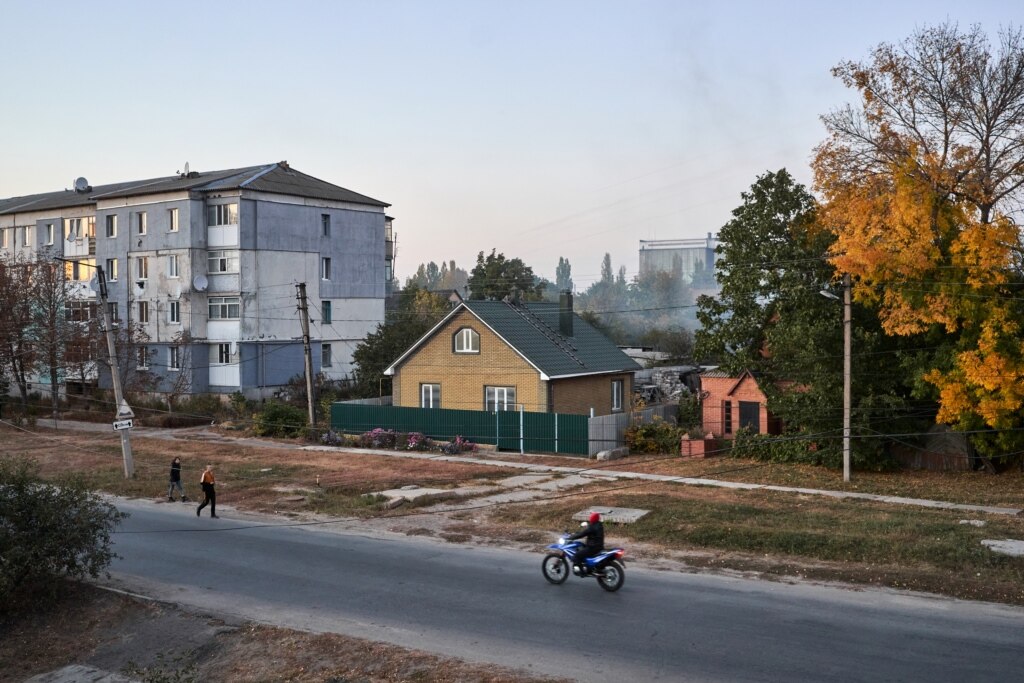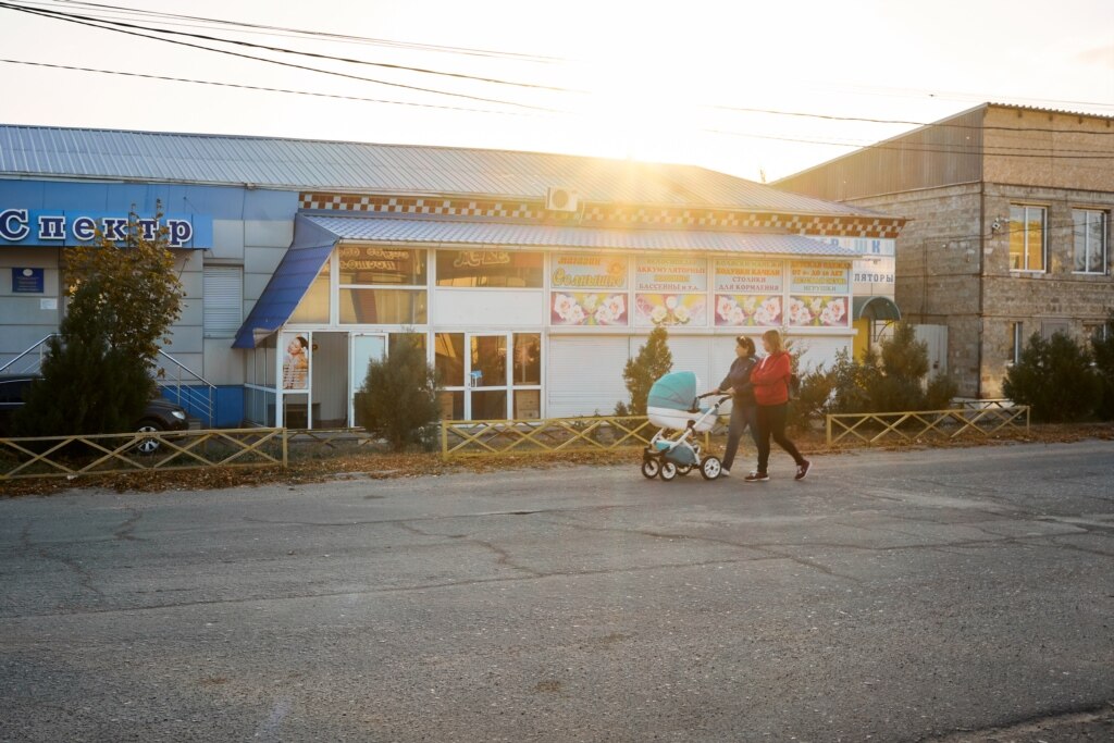 «Вранці як прокинулись, дивимось – а вже дірки під стовпи стоять, потім вже дні через три дивимось – а в нас паркан стоїть, – 23–річна Ганна Калюжна пригадує осінь 2018–го року, коли Росія поставила посеред вулиці триметрову «сітку» з колючим дротом. – Сину півтора роки було. Він бігав на інший бік вулиці раніше, поки машин не було. Так він прокидається і каже – мамо, а як же я бігатиму?»