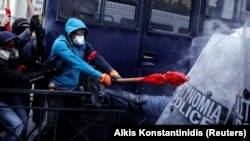 Сутички почалися на акції протесту проти угоди Греції з Македонією 20 січня в Афінах. Як повідомляють західні новинні агенції, низка протестувальників у масках намагалися пройти до огородженого парламенту, кидаючи в поліцейських каміння.