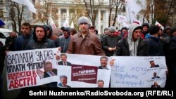 Біля Адміністрації президента України і будівлі уряду в Києві 24 жовтня відбуваються акції протесту з вимогою скасувати підняття тарифів на газ.