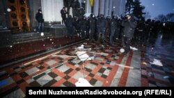 Раніше сьогодні під Радою почалися сутички між поліцією та протестувальниками, оскільки останні намагалися прорватися до парламенту після того, як депутати закрили засідання і провалили відстрочку касових апаратів для ФОП.