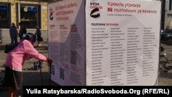 Крім капканів, у центрі міста встановили інформаційний стенд з іменами політичних в’язнів, громадян України.