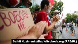 У вівторок, 23 червня, біля посольства Білорусі у Києві відбулася акція на підтримку права білорусів на демократичні вибори. Про це повідомляє кореспондент Радіо Свобода.