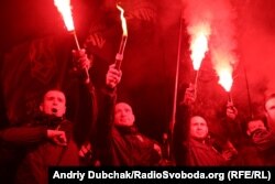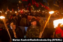 У п’ятницю ввечері кілька сотень людей пройшлися центром Києва з нагоди 112-ї річниці від дня народження лідера Організації українських націоналістів Степана Бандери.