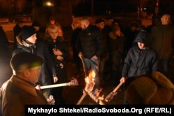 Учасники акції заспівали гімн, а також пісню «Батько наш Бандера, Україна – мати».
