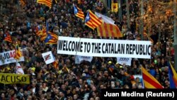 Десятки тисяч людей, які виступають за незалежність іспанського регіону Каталонії, 16 лютого вийшли на вулиці Барселони.