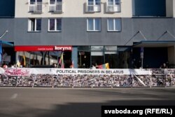 Учасники акції тримали портрети білоруських політв’язнів, які тривалий час утримуються без зв’язку: окрім Сергія Ціхановського, це політв'язні Максим Знак, Микола Статкевич, Ігор Лосік, Віктор Бабарико, Володимир Книга, Андрій Навицький та Олександр Францкевич. Мітингувальники також тримали банер «Лукашенка – в Гаагу» і плакат із фотографіями сотень білоруських політв'язнів.