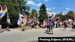 Тим часом, десятки супротивників ЛГБТ зібралися в іншому місці у Сараєві, заявивши, що хочуть захистити традиційні цінності від «агресивної» ідеології ЛГБТ.