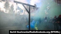 Біля будинку встановили імпровізовану шибеницю (яку згодом розібрали), запалили фаєри і скандували «Слава Україні» і «Тупицького у відставку».