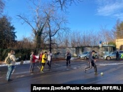 «У футболі всі намагаються грати за певними правилами, але російський режим їх не дотримується», – сказав ще один учасник акції, який мав на шиї шарф уболівальника київського футбольного клубу «Динамо».
