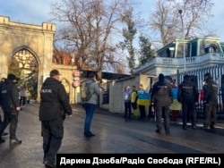 Протестувальники тримали в руках плакати із гаслами «Ліга чемпіонів агресії» або «Ліга чемпіонів несправедливих судів». Активісти також розгорнули український прапор. Подібна акція відбулася сьогодні і біля посольства Китаю, де учасники групи «Капутін» протестували проти місцевого режиму і закидали будівлю тенісними мʼячами.