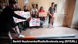 Раніше близько одинадцятої ранку 15 липня понад півсотні людей увійшли у приміщення Державного бюро розслідувань. Як повідомляє журналіст Радіо Свобода, серед них була народна депутатка Тетяна Чорновол (яка цього разу балотується від «Європейської солідарності»).