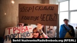 Під вікнами та у вестибюлі ДБР у цей час відбувався мітинг під прапорами «Європейської солідарності». Частина учасників акції була у балаклавах. Гупали пластмасовими трубами. Дехто мав при собі вогнегасники, які потім застосовували у приміщенні, інші тримали плакати з вимогою «люстрації» голови ДБР Романа Труби.
