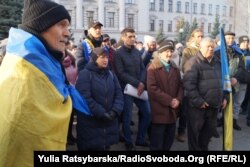 У Дніпрі біля будівлі облдержадміністрації провели акцію протесту «Червоні лінії для Зеленського». На неї зібрались близько трьох сотень людей з національною символікою.