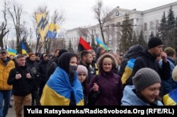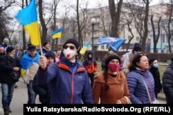 У руках вони тримали синьо-жовті і червоно-чорні прапори. Від партійної символіки вирішили відмовитися.