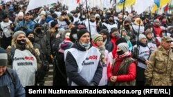 Протестувальники рушили ходою до Офісу президента, щоб озвучити свої вимоги. Як передає кореспондент Радіо Свобода у ці хвилини проїзд до ОПУ заблокований правоохоронцями і їхнім транспортом.